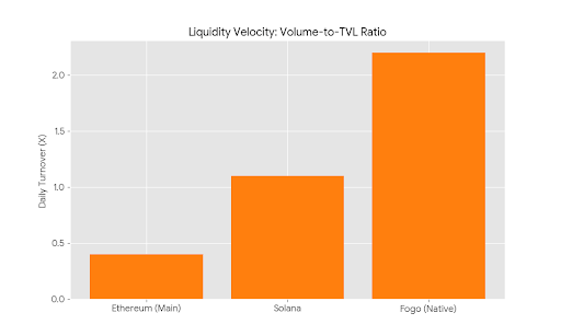 I checked the volume-to-liquidity ratios across Ambient deployments. On Ethereum, the ratio hovers around 0.3-0.5x depending on market conditions. On Solana, it's closer to 0.8-1.2x. On Fogo, I'm seeing 1.8-2.4x in the same asset pairs. The same liquidity is turning over twice as fast because the execution environment enables tighter ranges and more active management. That's not a marginal improvement. That's a structural advantage that compounds over time.