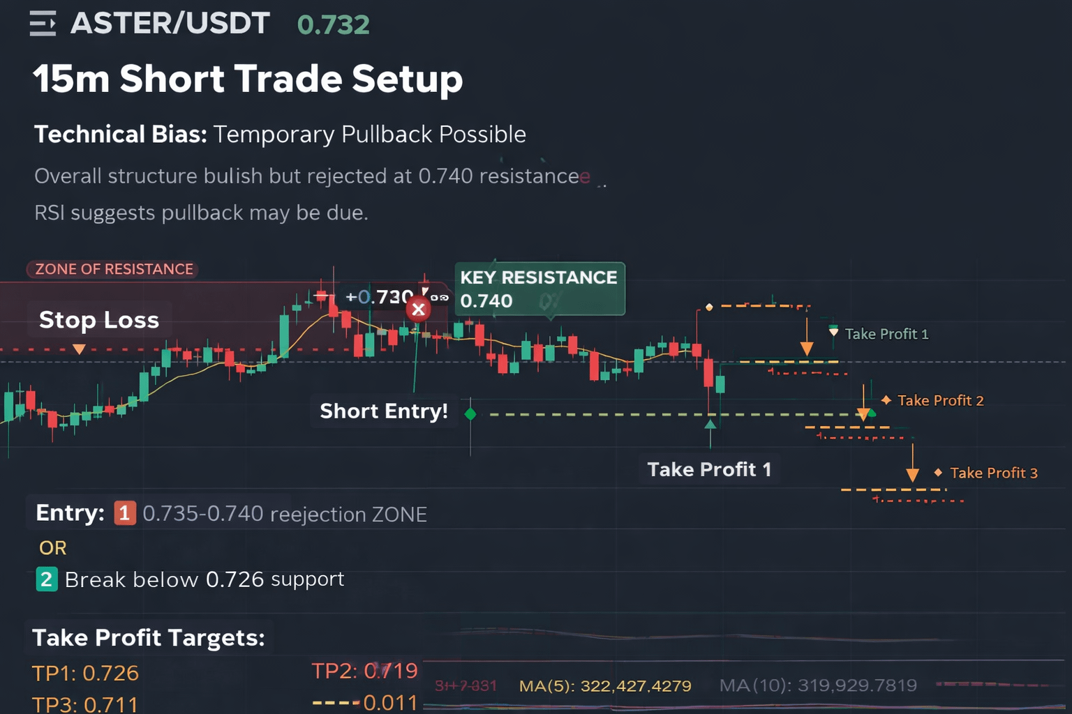 #ASTER Although overall structure is bullish, price recently faced rejection near 0.740 resistance. RSI above 60 suggests room for correction.