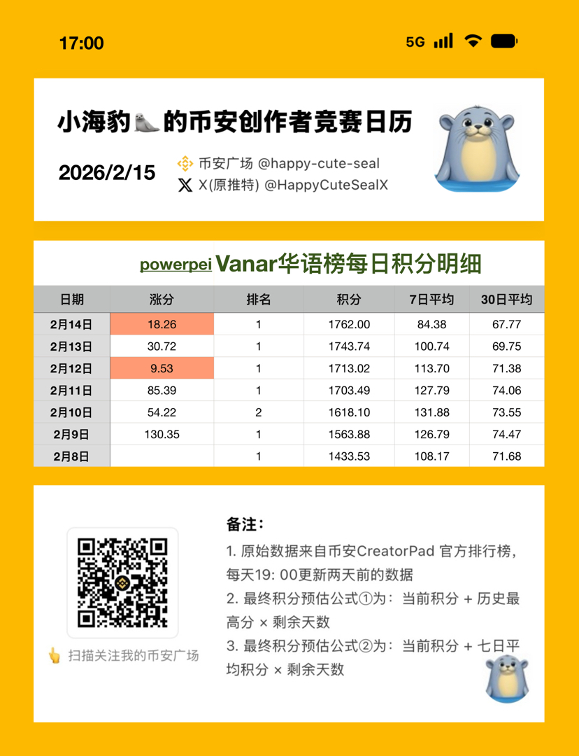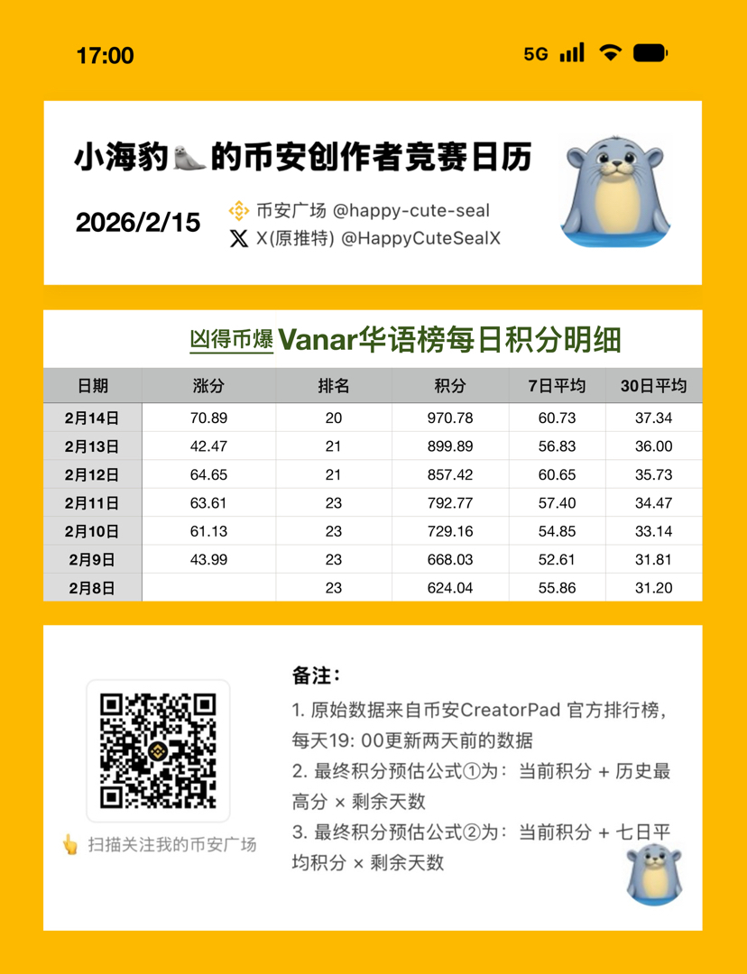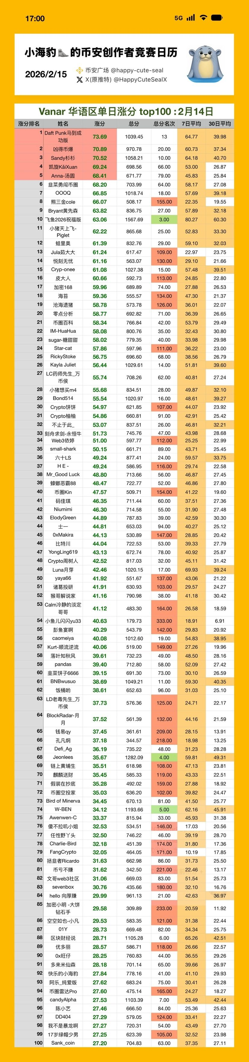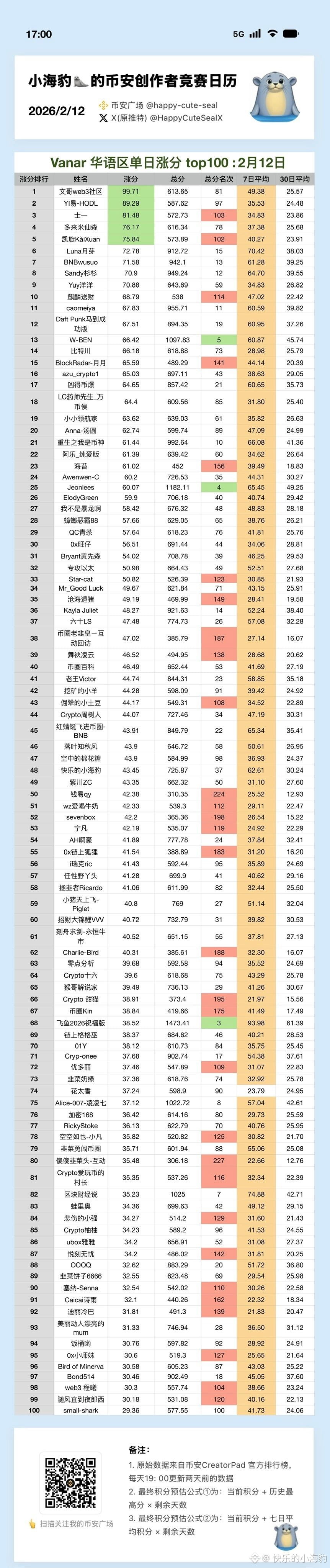 2026/02/12 VANRY 华语榜top100涨分数据👇: