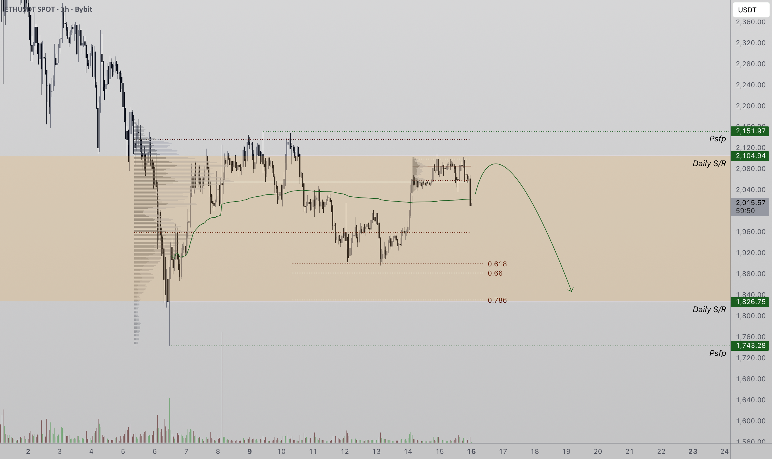 VWAP teraz działa jako punkt obrotu. Akceptacja poniżej tego poziomu wskazywałaby, że sprzedający pozostają u władzy, zwiększając prawdopodobieństwo ruchu rotacyjnego w dół w obrębie zakresu. W tym scenariuszu następny główny cel spadkowy znajduje się w pobliżu regionu $1,800, który reprezentuje dolną granicę obecnego zakresu handlowego i kluczowy obszar historycznego popytu.