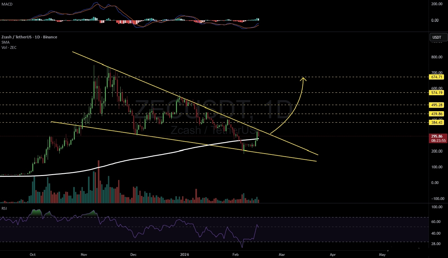 The Daily SMA200 is proving to be a formidable line in the sand, acting as strong support for the current price action. As $ZEC squeezes toward the apex of the wedge, a decisive break above the resistance line could ignite a significant move.