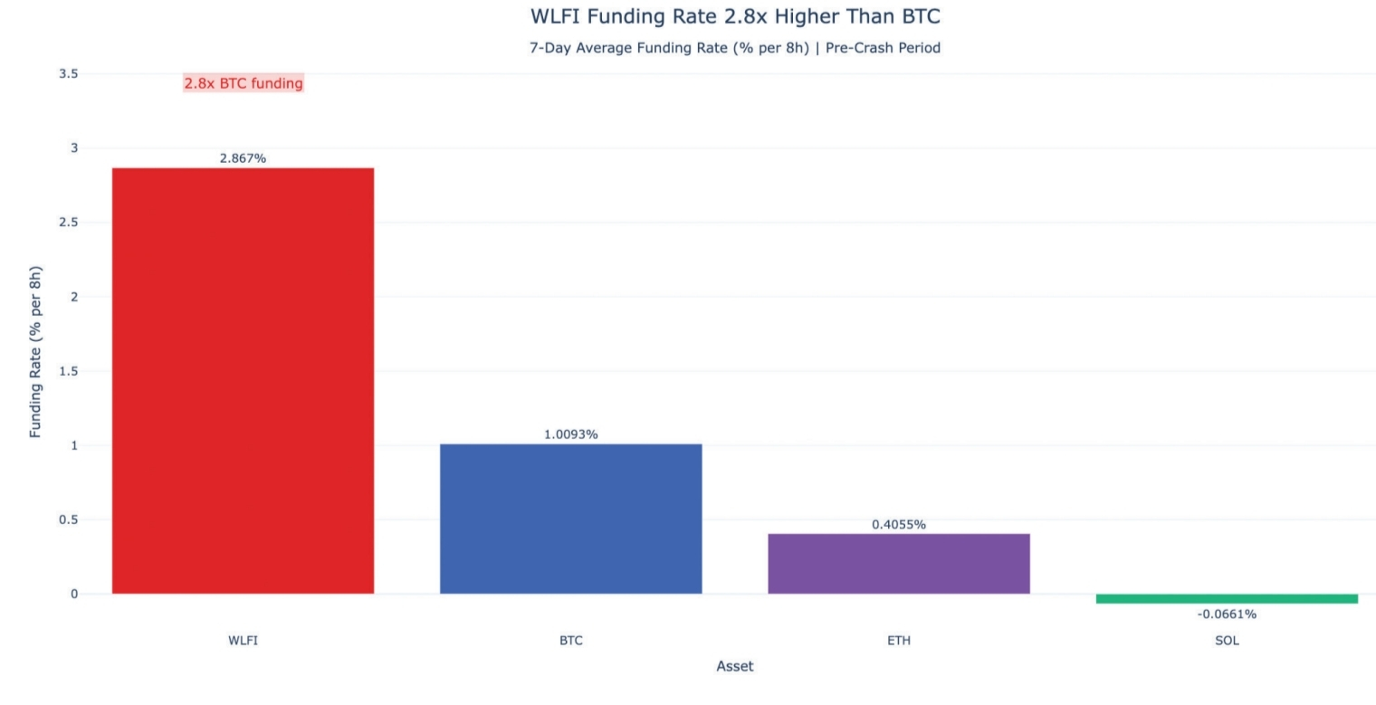 Além disso, as taxas de financiamento dos contratos futuros perpétuos do WLFI subiram para cerca de 2,87% a cada oito horas. Esse nível representa um custo anualizado de aproximadamente 131% para manter posições alavancadas, sinalizando um desequilíbrio extremo no mercado e uma forte concentração de apostas especulativas.