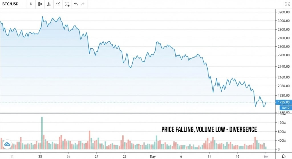 To jest miejsce, w którym musimy oddzielić emocje od danych. Mimo spadku ceny, istnieje ciekawy sygnał, o którym szeptają doświadczeni traderzy: wolumen nie eksplodował.
