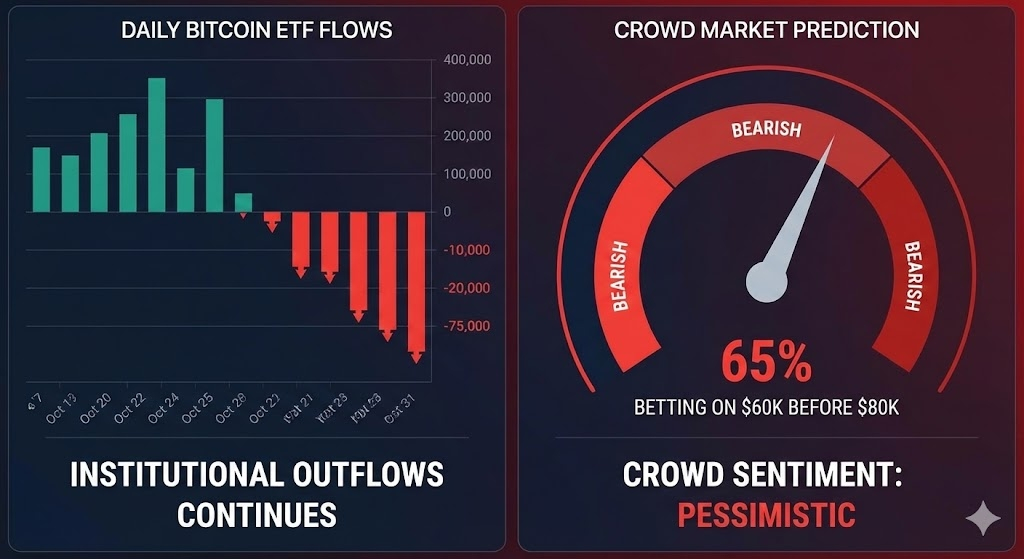 Odpływy instytucjonalne i niedźwiedzie oczekiwania tłumu podkreślają rosnący pesymizm.