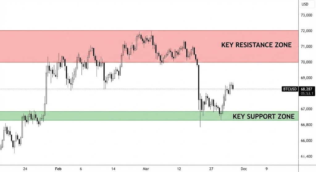 Strefa 66.4K–67K to krytyczne pole bitwy dla kierunku krótkoterminowego trendu.