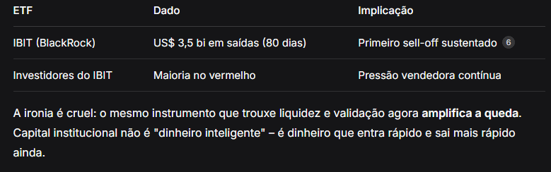 Os ETFs de Bitcoin spot, celebrados como a "salvação institucional" em 2024, tornaram-se vetores de queda .