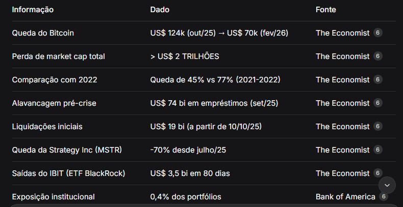 Esta análise é baseada em fontes públicas de alta credibilidade (The Economist, Bank of America, dados de mercado) e tem caráter informativo e educacional. Não constitui recomendação de investimento. O mercado de criptomoedas envolve riscos significativos. Faça sua própria pesquisa (DYOR) antes de tomar qualquer decisão financeira.