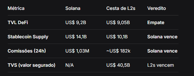 📊 4. ANÁLISE COMPARATIVA: SOLANA vs. ETHEREUM L2s