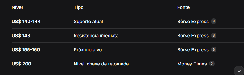 Compra moderada: US$ 140-150 (região atual)