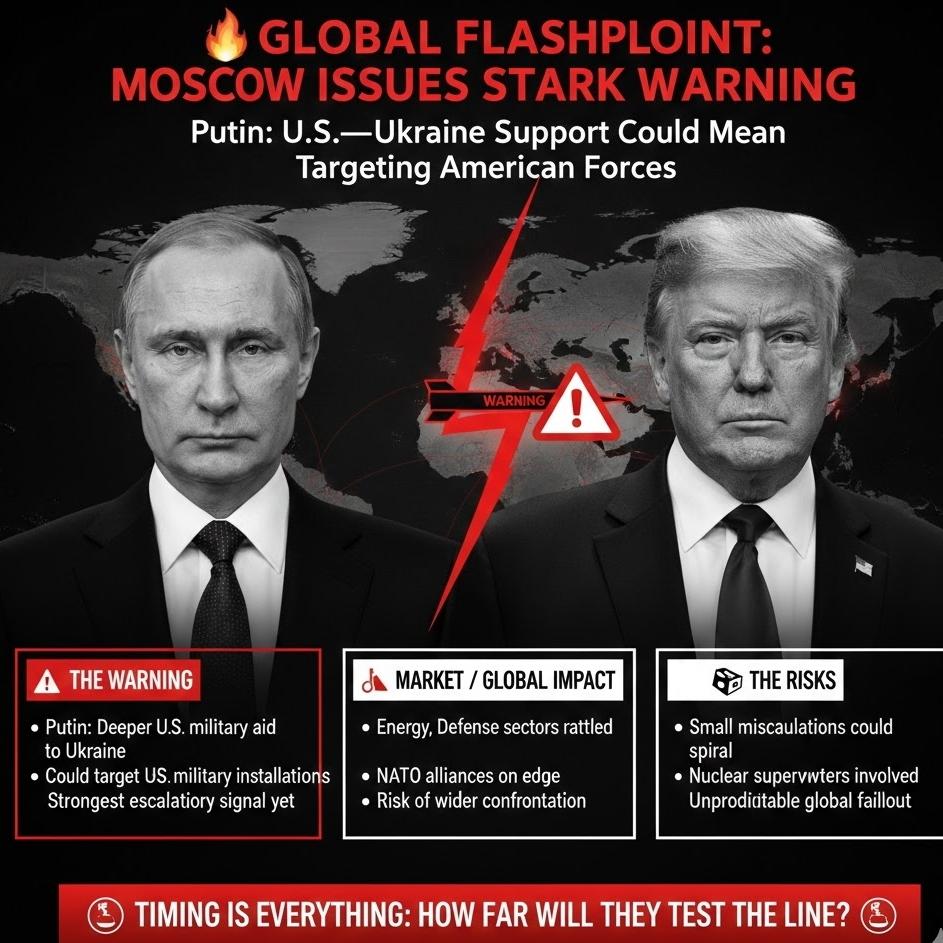 Władimir Putin rzekomo przekazał ostrą wiadomość: jeśli Waszyngton pogłębi wsparcie militarne dla Ukrainy — w tym ruchy związane z Donaldem Trumpem lub siłami USA — Rosja może rozważyć atak na amerykańskie instalacje wojskowe. Oświadczenie to jest postrzegane jako jeden z najsilniejszych sygnałów eskalacyjnych od początku konfliktu.