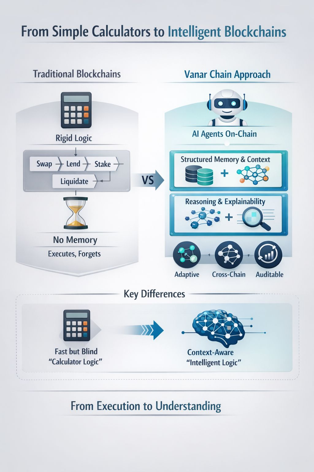 Most blockchains today behave like ultra-fast calculators. You give them inputs, they execute rigid logic, and they move on. The process is clean, predictable, and reliable — but it’s also blind to context. Smart contracts don’t remember yesterday unless a developer forces memory into the design, and even then, it feels artificial. Real systems don’t work that way. They accumulate history, adapt to patterns, and operate with context.