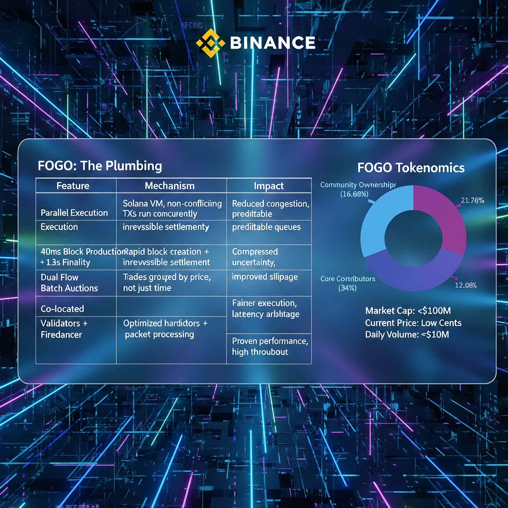 FOGO tokenomics allocates 16.68 percent to community ownership, 34 percent to core contributors, 21.76 percent to the foundation, and 12.06 percent to institutional investors. That structure tells you who the network is prioritizing long term.