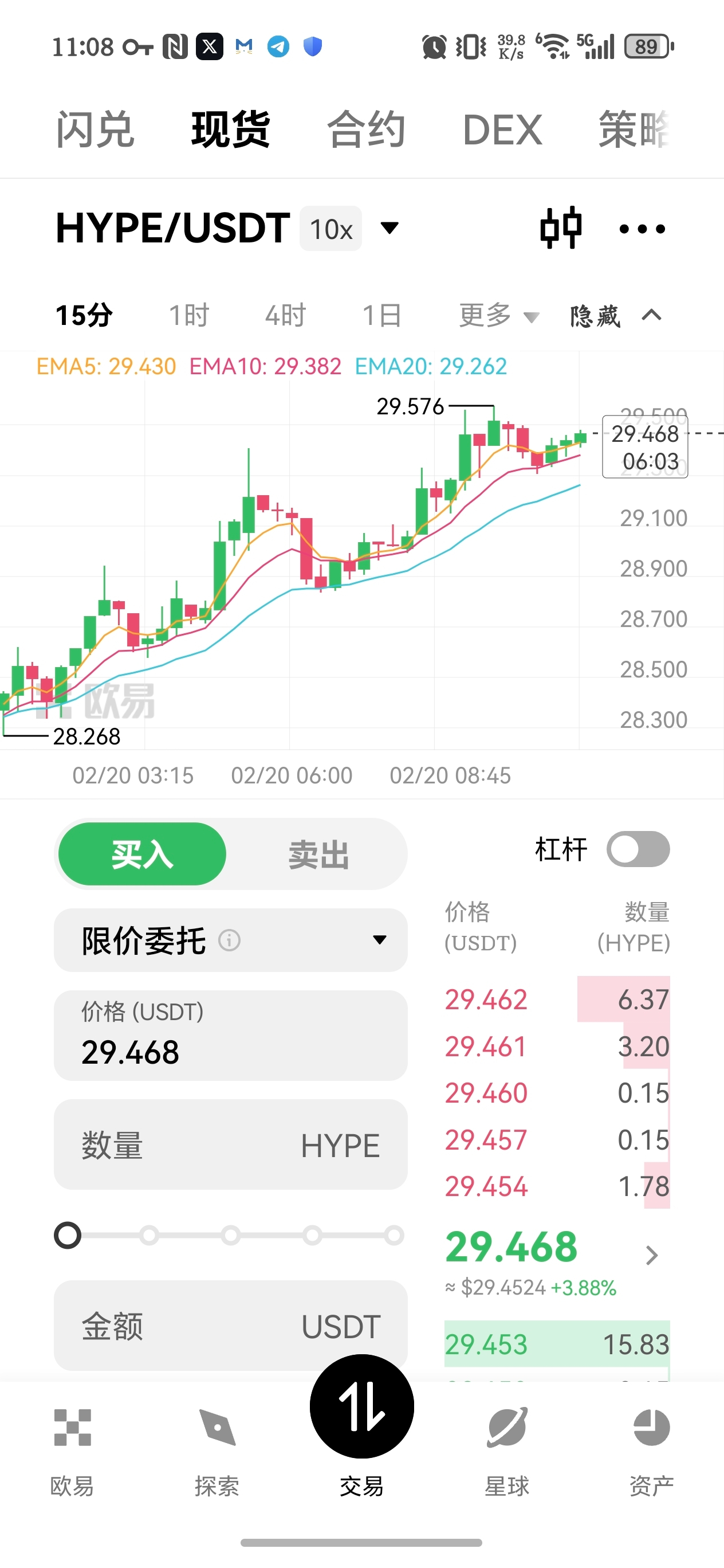 $HYPE USDT 当前在29.44附近窄幅震荡,市场处于明显的低波动状态。🚨