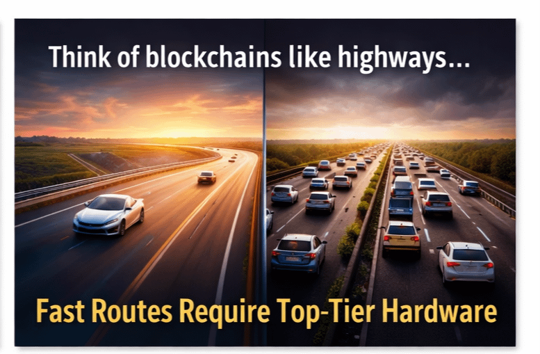 Imagine two highways. One is built wide, smooth, and perfectly engineered — but only high-performance cars can drive at full speed. The other allows almost any vehicle, but traffic flows more cautiously. Fogo chose the first model.