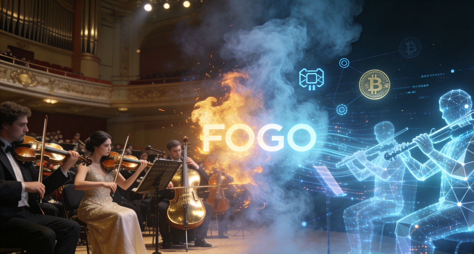 昨晚大年初四,我吃完饭散步路过音乐厅,刚好撞见交响乐团在排练,好像是要准备元宵的表演。指挥轻轻一抬手,几十种乐器瞬间齐奏,每一个音符都卡得极准,快、稳、又丝毫不乱。我站在门口愣了半天:一边随着旋律抖动,一边想到这不就是区块链行业天天喊、却没几个真正做到的极致速度跟协同吗?这一刻我脑子里直接就蹦出了FOGO来。没错,@Fogo Official 它就像加密世界里,一支专门为DeFi而生的数字交响乐团。