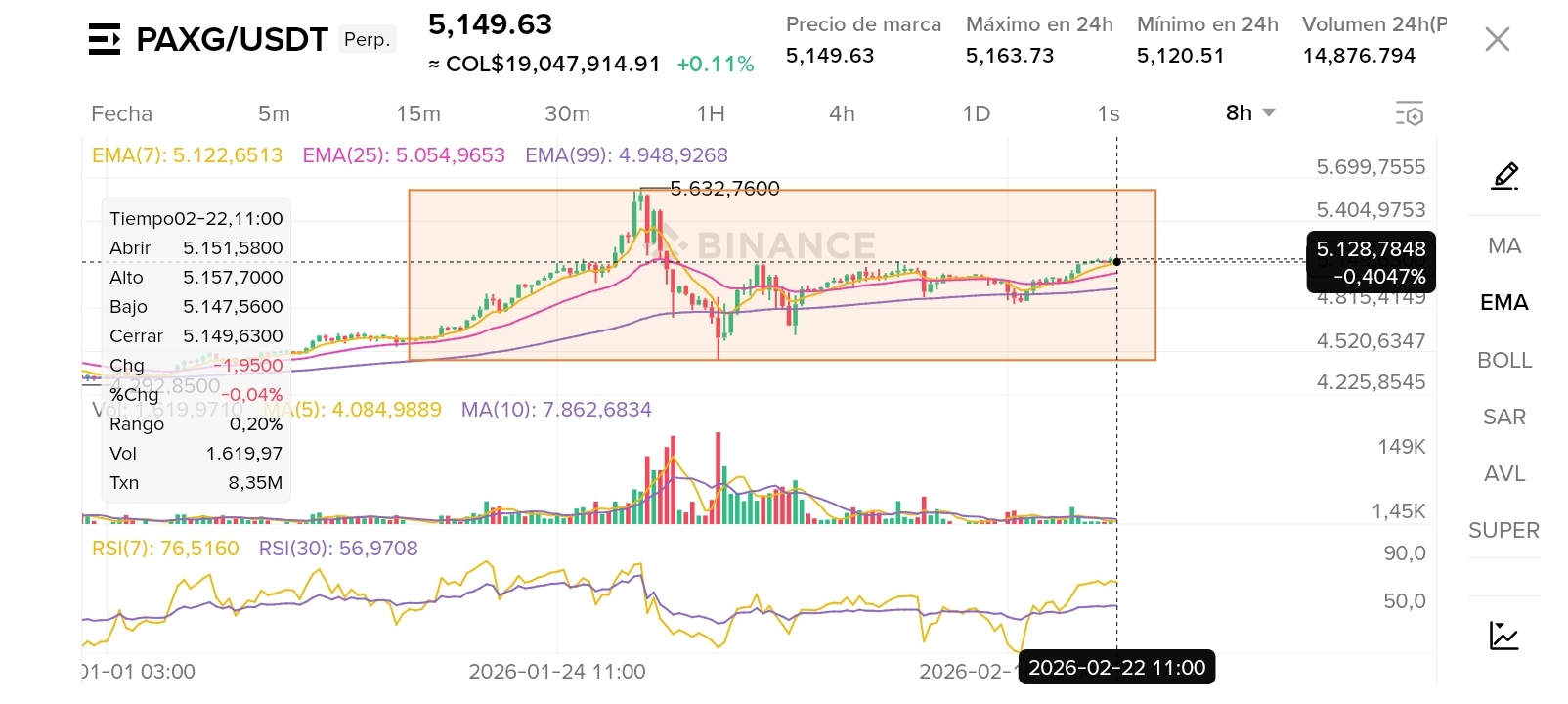 - Precio actual / mark price: ~5,149.63 USDT