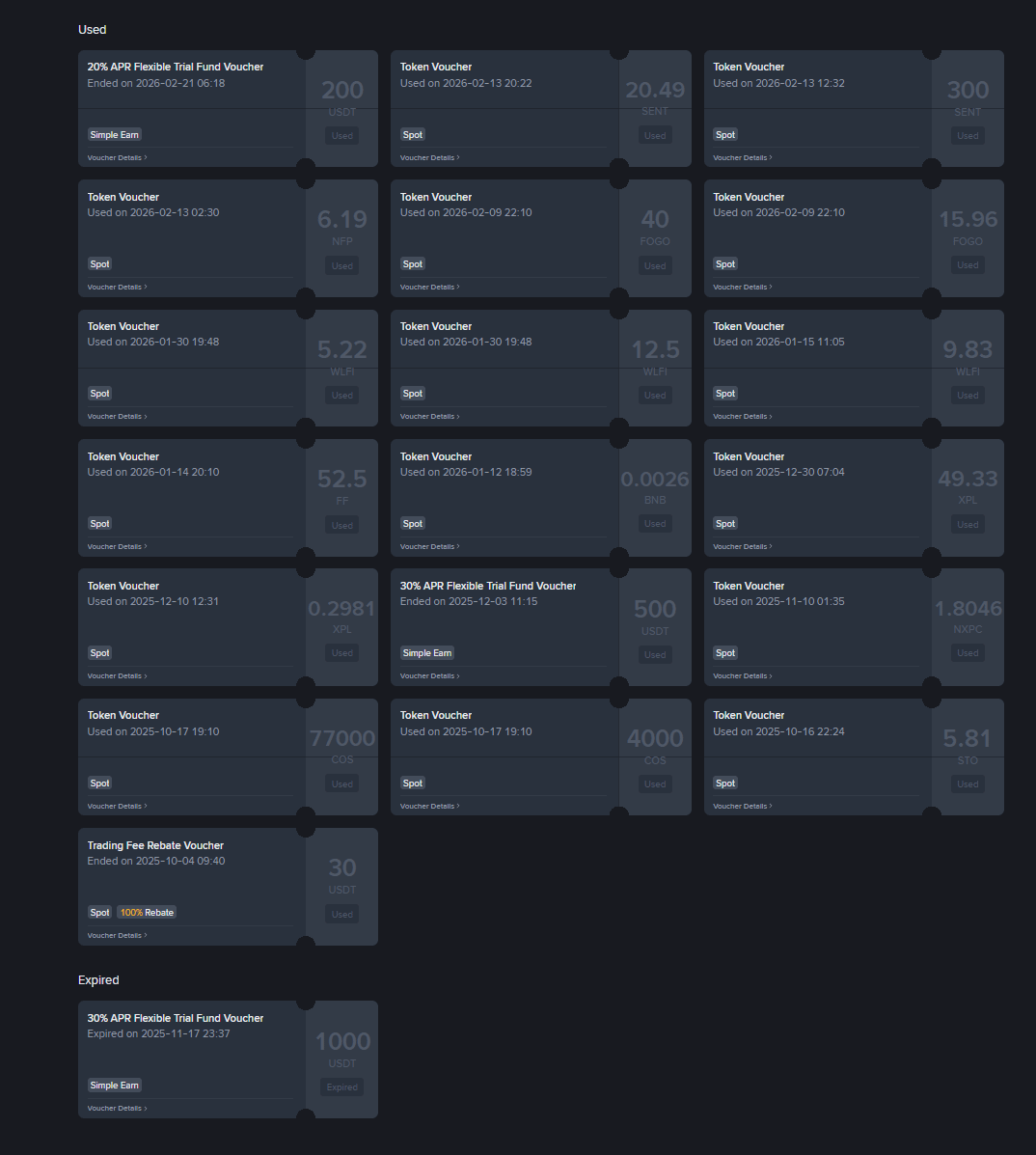 Sau một thời gian kiên trì, kết quả bắt đầu ra đều như ảnh: voucher, rebate, fund trial, token bonus về liên tục mỗi tháng, dù chỉ với 1 acc. Không giàu nhanh, nhưng ổn định – bền vững – ít áp lực tâm lý, rất phù hợp với những ai muốn kiếm thêm thu nhập trong crypto theo cách an toàn và dài hạn.