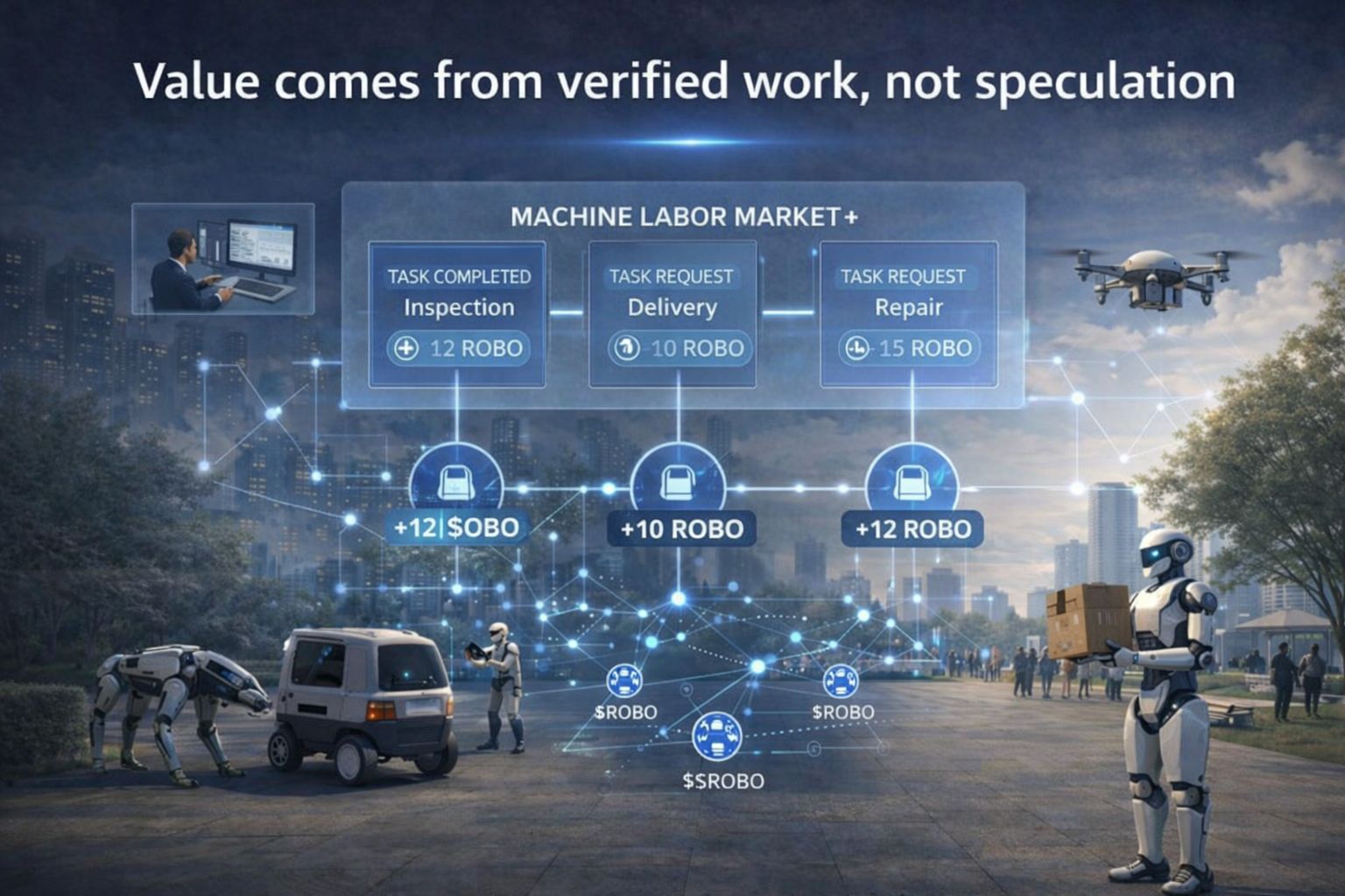 When a robot completes a verified task, it earns $ROBO.