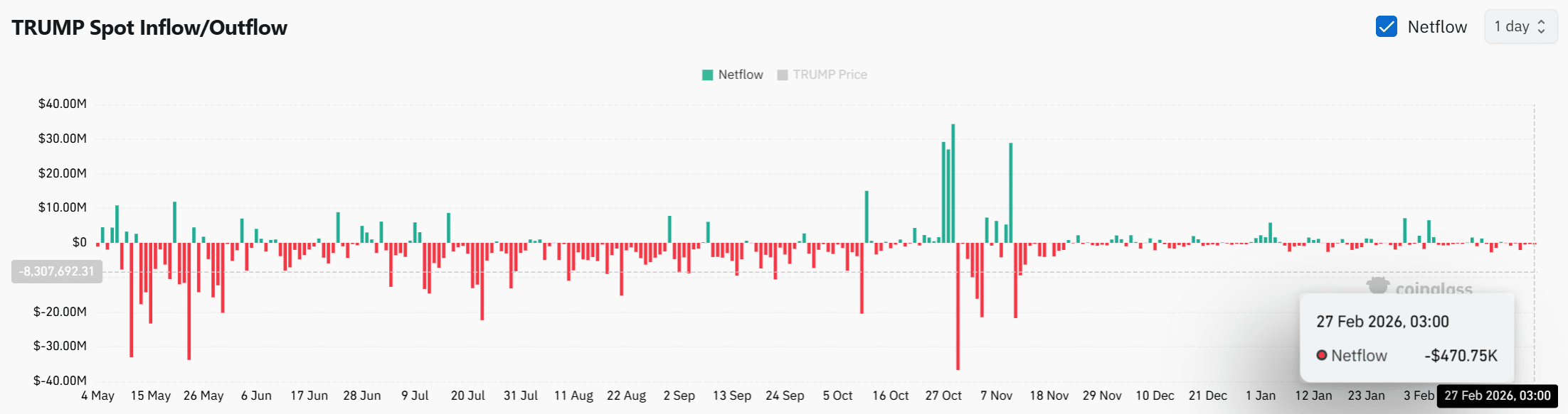 Bất chấp lệnh nạp 17.3 Triệu USD đáng sợ của cá voi, dữ liệu spot thực tế lại cho thấy dòng tiền rút ròng ở mức -$470.75K. Điều này chứng minh rằng toàn thị trường chưa hề hoảng loạn, và cá voi vẫn chưa thực hiện một cú xả hàng chủ động nào.