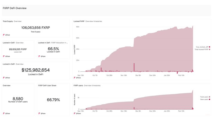 Hơn 3 triệu FXRP đã được đúc và nạp lên sàn chỉ trong vòng 24 giờ vào ngày 27 tháng 2. Với tổng nguồn cung FXRP đạt gần 106 triệu, khoảng 89 triệu token (~126 Triệu USD) hiện đang bị khóa trong DeFi. Điều này có nghĩa là gần 70% toàn bộ nguồn cung FXRP đang được triển khai hoạt động một tín hiệu khổng lồ về sự chấp nhận hạ tầng đầy niềm tin, chứ không chỉ là đầu cơ nhàn rỗi.