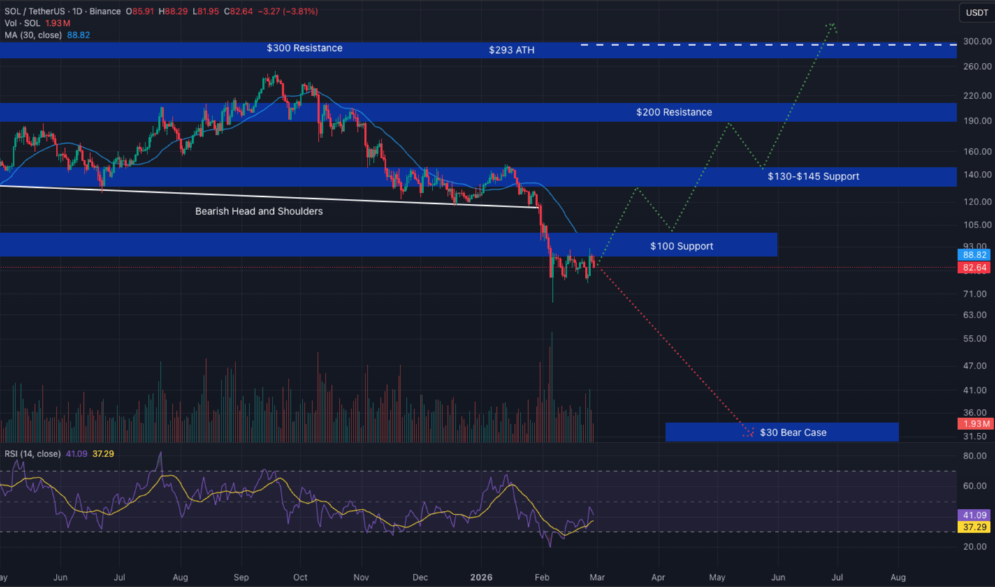 Chỉ số RSI đã vòng lên mức 41 và giá đang tích cực hội tụ trở lại với đường trung bình động 30 ngày. Một cú phá vỡ dứt khoát qua các kháng cự $200 và $275 sẽ dọn đường cho một mức đỉnh lịch sử (ATH) mới vượt $293.31 trong mùa hè này.