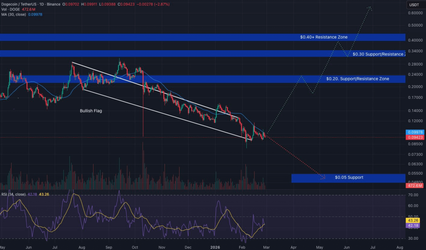 Nếu Đạo luật CLARITY châm ngòi cho một đà tăng toàn thị trường, câu chuyện "DOGE lên $1" dai dẳng của nhỏ lẻ có thể bùng cháy trở lại một cách bạo lực, thiết lập một mục tiêu thực tế vào giữa năm ở mức $0.50.