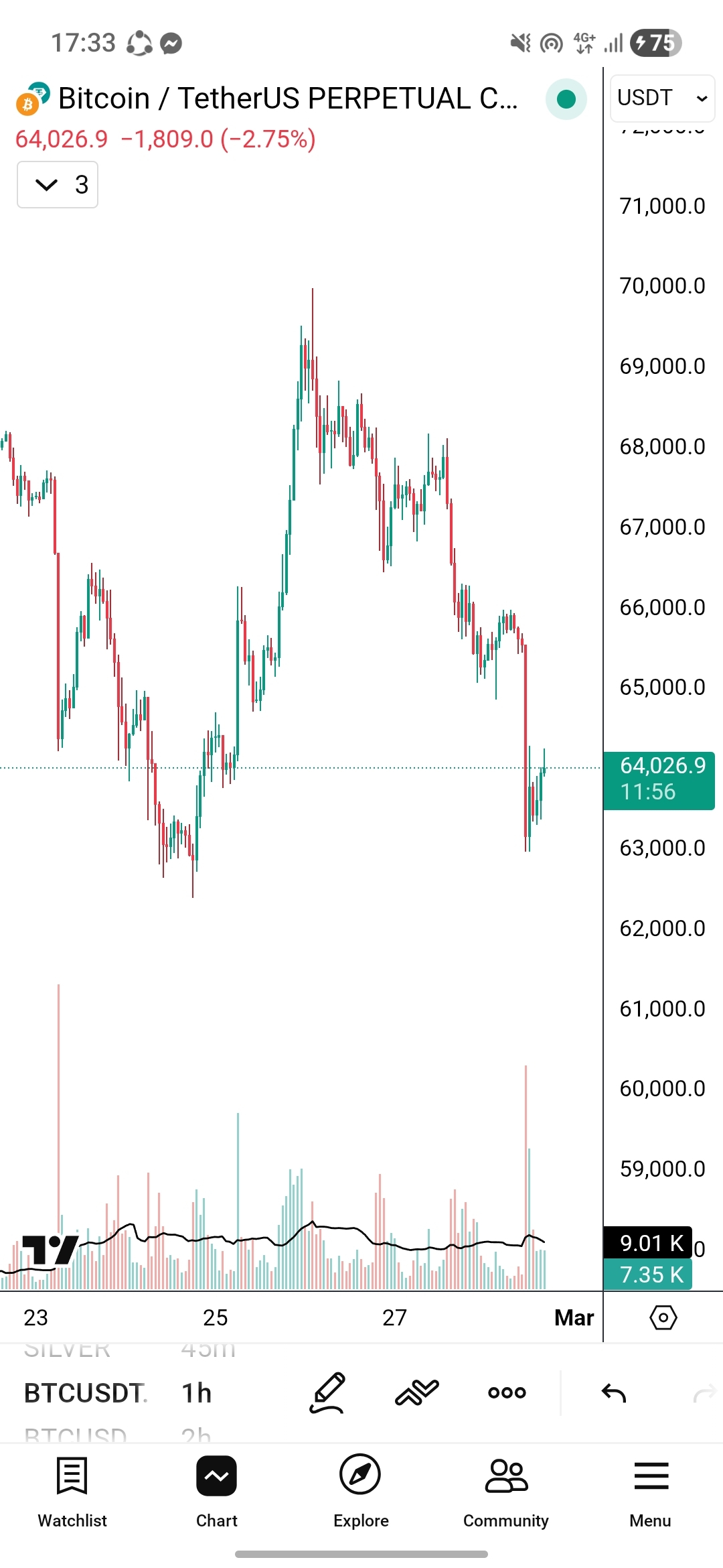 A sharp drop toward $63,000–$63,300 created panic selling with high volume.