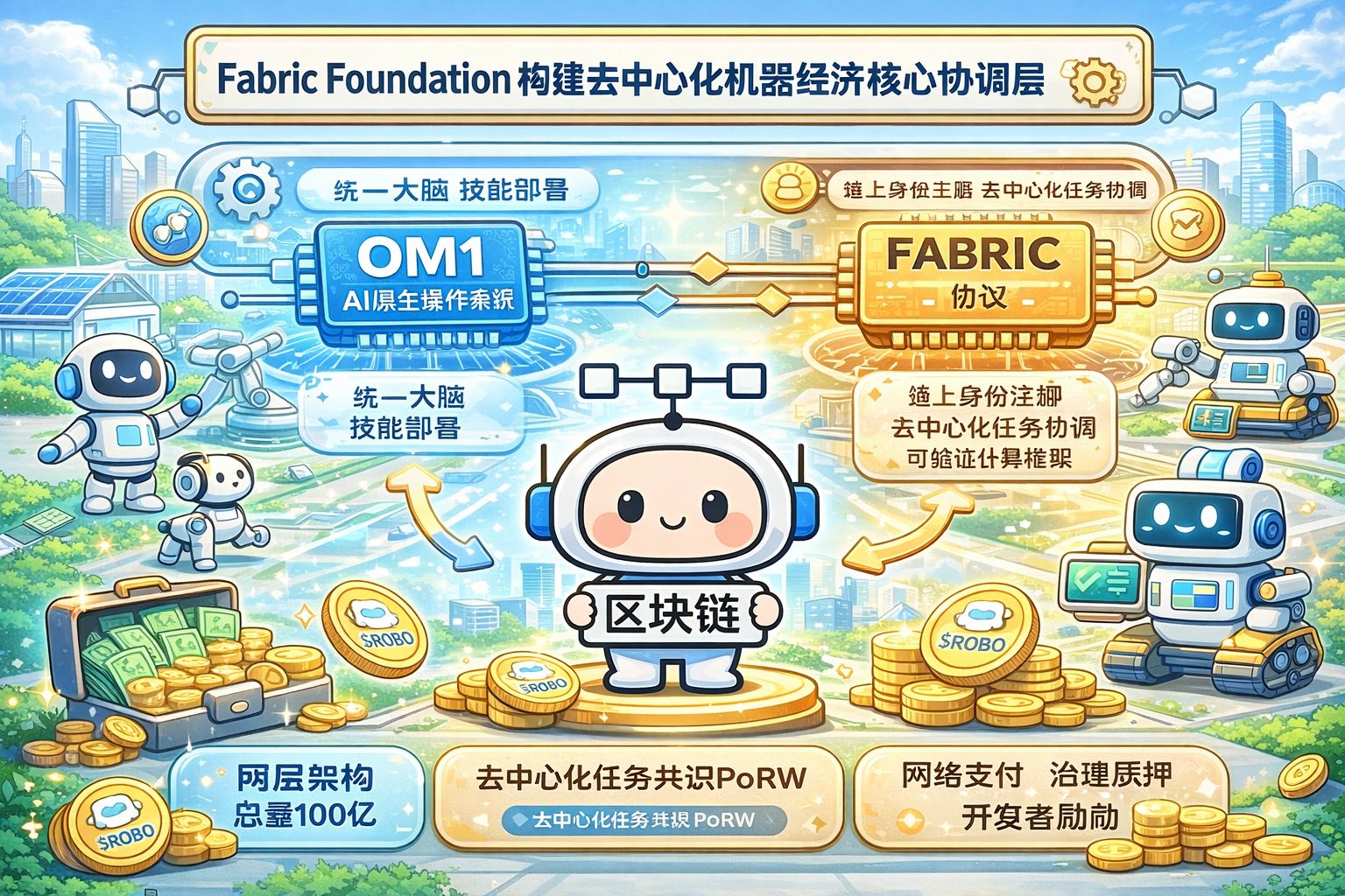 Technicznie, projekt przyjmuje innowacyjną architekturę "wykonywanie-sortowanie-weryfikacja" oraz łączy konsensus dowodu pracy maszyn (PoRW), aby zapewnić wiarygodną współpracę w zadaniach ze świata fizycznego. Jego token$ROBO ma całkowitą ilość 10 miliardów, zaprojektowany jako wielofunkcyjny aktyw, używany do płatności w sieci, stawiania na zarządzanie oraz motywacji dla deweloperów, aby dopasować długoterminowe tworzenie wartości w ekosystemie. Dzięki wsparciu czołowych instytucji i wyraźnej ścieżce DePIN, Fabric kładzie fundamenty dla skalowalnych finansów i porządku na drodze do ery uniwersalnych robotów.#robo @Fabric Foundation $ROBO