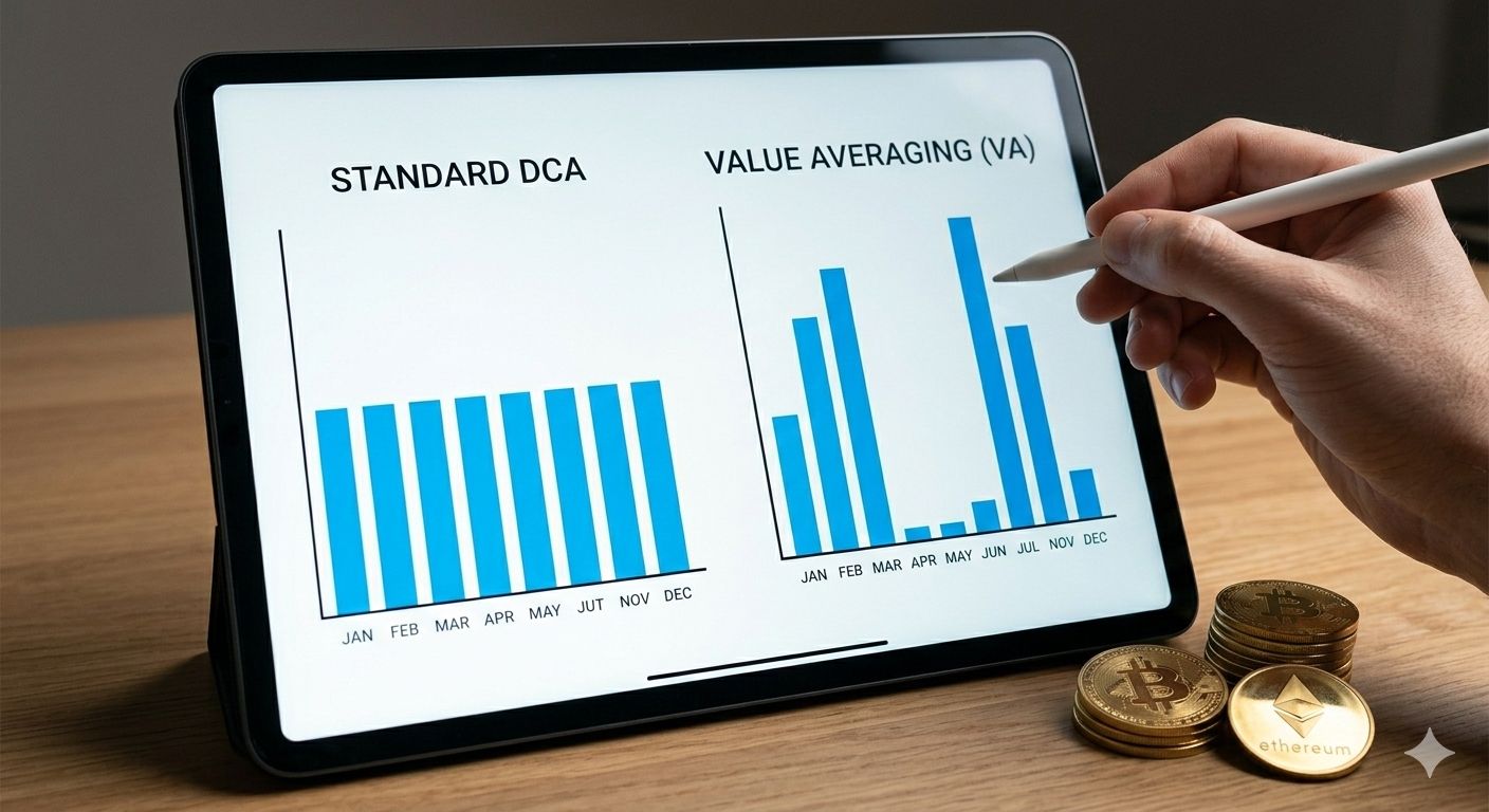 Once the base logic of DCA is understood, analytical traders may look to optimize the strategy. Standard DCA involves investing a fixed fiat amount. However, there is a more advanced iteration: Value Averaging (VA). While standard DCA is passive optimization, VA is active, data-driven optimization.