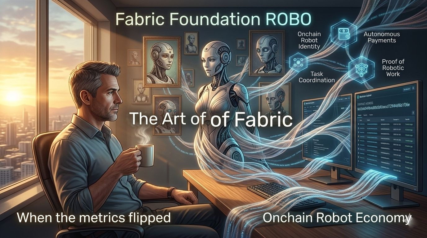 Just poured another coffee, eyes burning a bit from staring at the monitors all afternoon. Needed that break. The Fabric Foundation $ROBO protocol has been the quiet thread running through everything lately — those onchain robot identities, the way it sets up payments and coordination for machines that actually operate out there. Not the loud stuff. Just the steady signals.