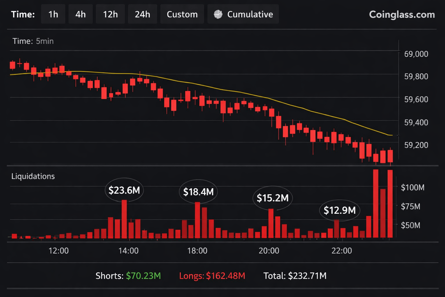 عمليات تصفية ضخمة: تجاوزت التصفيات في العقود الآجلة 300 مليون دولار خلال عطلة نهاية أسبوع واحدة، نتيجة الهبوط المفاجئ للبيتكوين تحت مستويات دعم رئيسية (مثل 64,000 دولار).