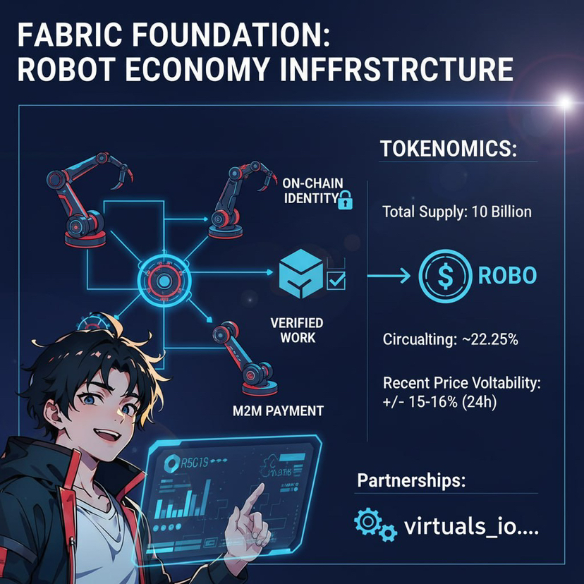 Fabric đang xây một lớp hạ tầng cho “robot economy”: máy móc có danh tính on-chain, cơ chế verified work, và token $ROBO để thanh toán machine-to-machine (M2M).