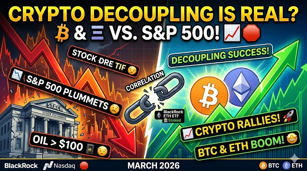 The S&P 500 and Nasdaq are grappling with soaring oil prices (Brent crude hitting $100/barrel! 🛢️) and geopolitical tensions in the Middle East. Usually, crypto follows the stock market, but right now, the correlation is breaking. With the S&P 500 correlation at -14%, digital assets are finally trading on their own merits. 💎