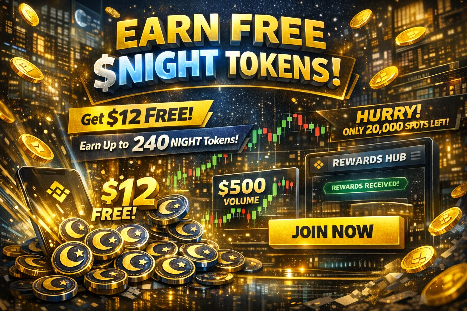 - Get up to Win 1 BTC $12 worth of FREE $NIGHT tokens instantly.