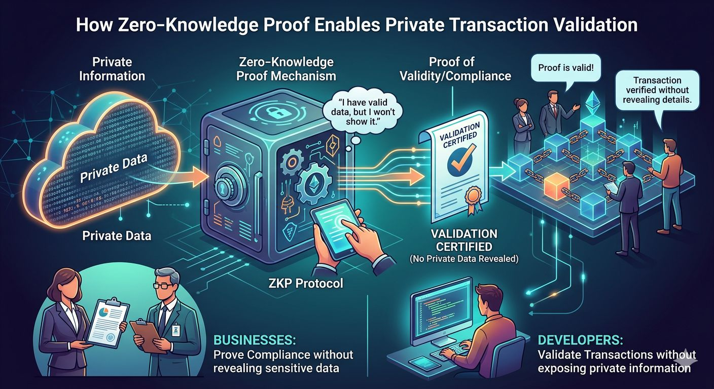 This capability is made possible through advanced cryptographic techniques such as Zero‑Knowledge Proof, which allow transactions to be validated without revealing the underlying data. In practice, this means businesses and developers can prove compliance, accuracy, or transaction validity without exposing private information.