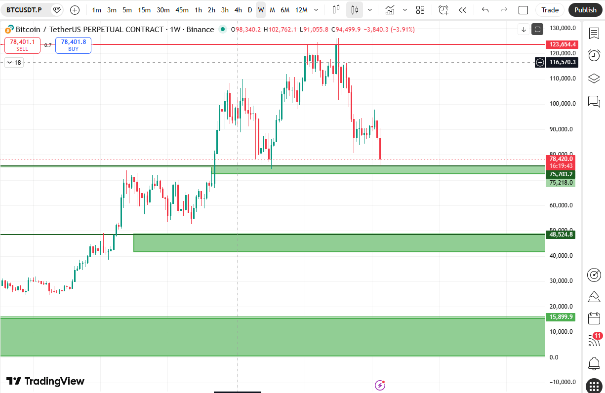 Następne silne wsparcie tygodniowe, jeśli 75k zawiedzie.