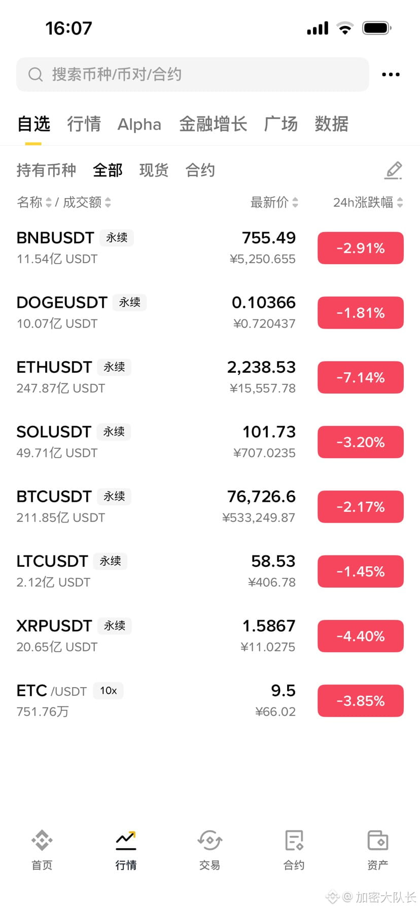 现在这个行情真的是鸡肋行情,食之无味弃之可惜,想抄底面临的风险也很多,不抄底又怕错过,机智的小队长,选择了底部小资金持有现货,从开始入场喜欢买各种币,生怕每一个错过,当时的自己看哪一个都像十倍币,百倍币,哎呀现在的自己哪个币都不敢买,生怕买错了摩托变单车,以前我们的口号是博一博单车变摩托,是什么让曾经拥有幻想的自己变得越来越务实了,哈哈,多么痛的领悟,现在的话稳定大于一切,现在队长优先选择的币越来越少btc ,eth ,bnb ,doge ,sol ,xrp ,这六个币已经够我们玩了,风险稍微小一点,不会像山寨一样这波暴跌百分之90!现在这个行情真的不想打开软件了,看到亏损,看到红色的列表,真下头哈哈