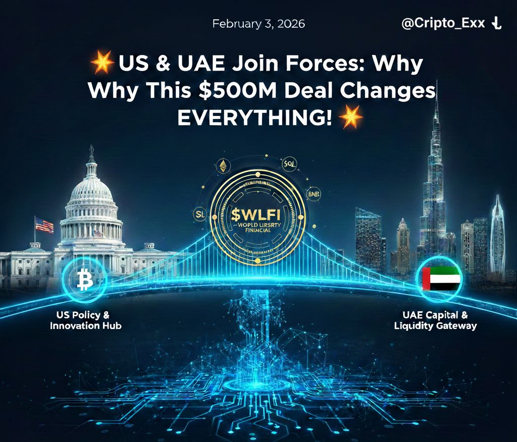 Niedawno potężna grupa inwestycyjna z Abu Zabi (ZEA) zainwestowała 500 milionów dolarów w firmę o nazwie World Liberty Financial ($WLFI). To nie jest zwykła transakcja biznesowa; to jak budowanie superautostrady między USA a Bliskim Wschodem dla kryptowalut! 🇦🇪🤝🇺🇸