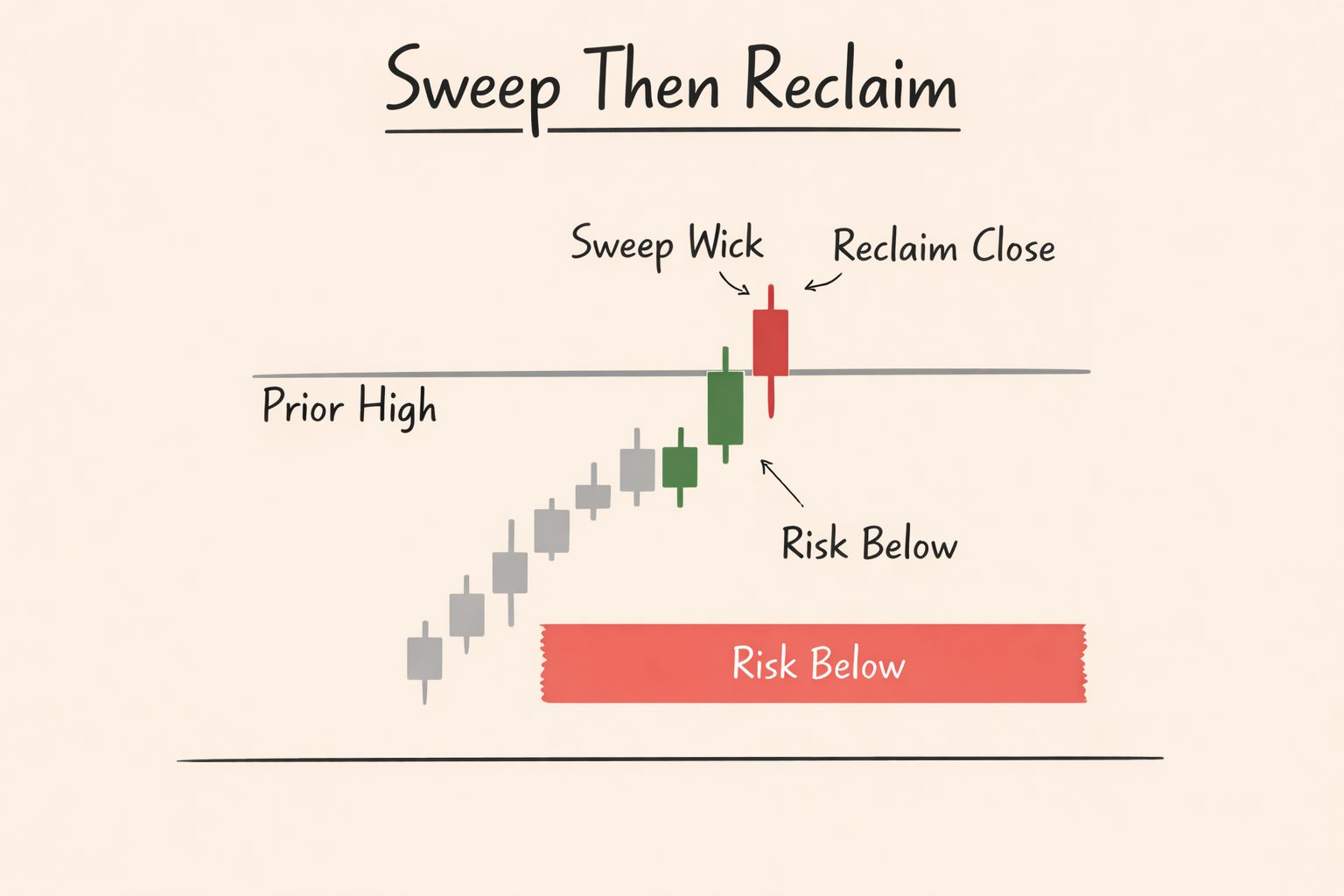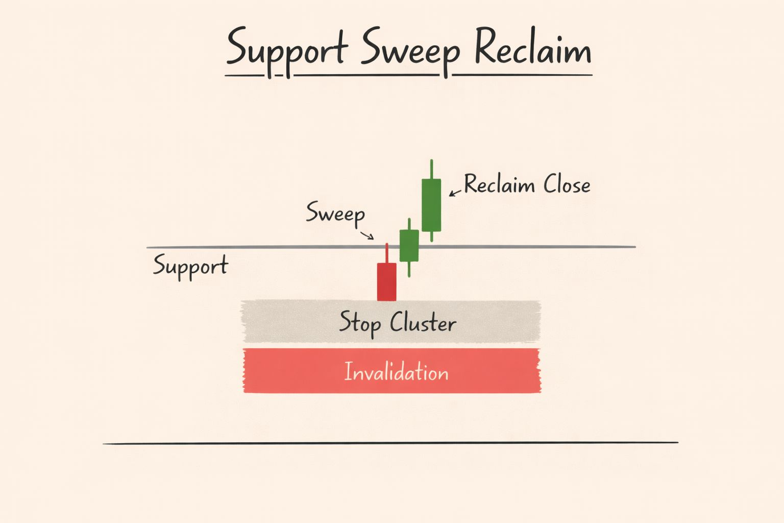 Permita que o preço feche de volta acima do suporte e defina o risco abaixo do ponto mais baixo da varredura.
