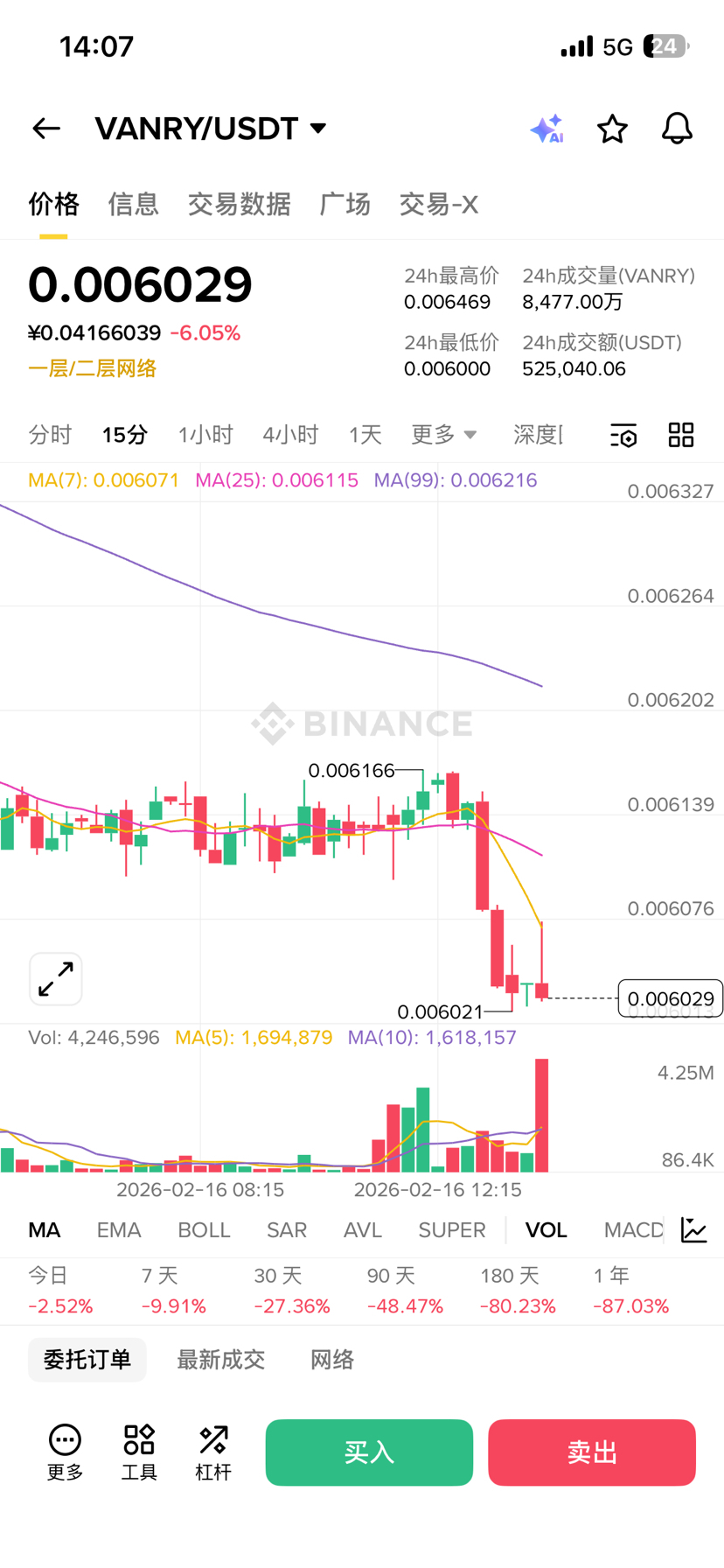 Eu verifiquei os dados de mercado disponíveis, $VANRY agora está oscilando em torno de $0.006, com um volume de 24h em torno de $2-3M, um volume circulante de cerca de 2,29 bilhões, um suprimento máximo de 2,4 bilhões, e uma capitalização de mercado em torno de $13-14M (diferentes plataformas podem ter pequenas variações).