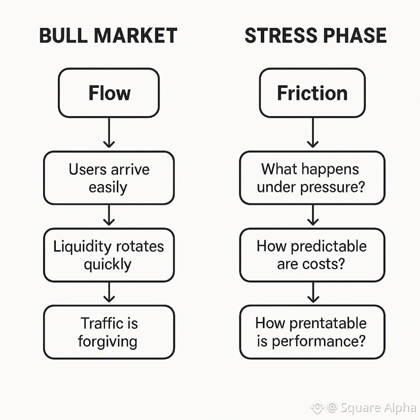 And in infrastructure, the chains that survive friction don’t need to chase flow.