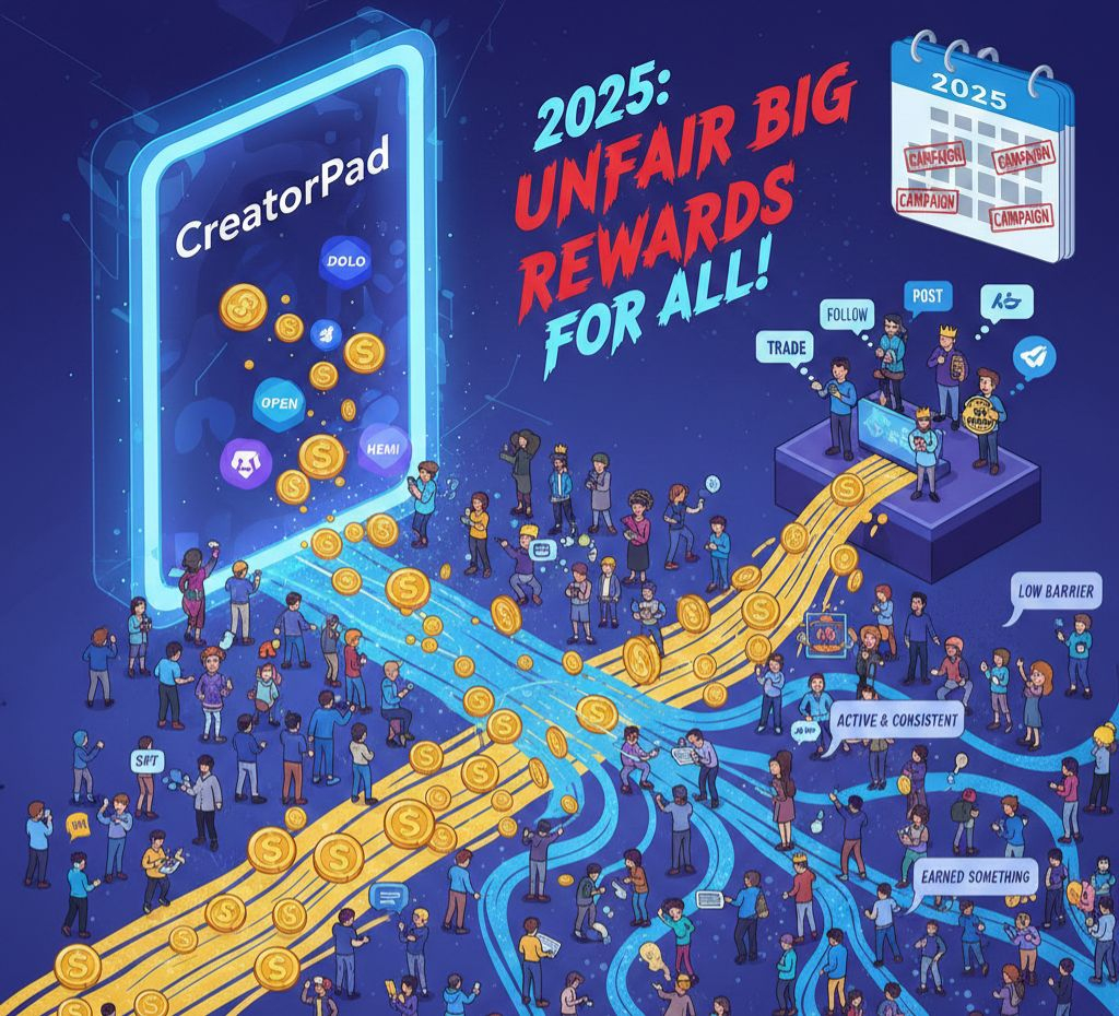 Houve uma sensação no ano passado de que o Binance CreatorPad realmente abriu a porta para qualquer um disposto a participar. Ao longo de 2025, campanhas foram lançadas de forma consistente, oferecendo substanciais pools de tokens que foram distribuídos entre uma ampla base de colaboradores. Projetos como DOLO, OPEN, HEMI e outros lançaram programas de recompensas variando de centenas de milhares a mais de um milhão de tokens. A estrutura era simples. Os usuários criaram postagens na Binance Square, seguiram contas de projetos, completaram pequenas exigências de negociação.