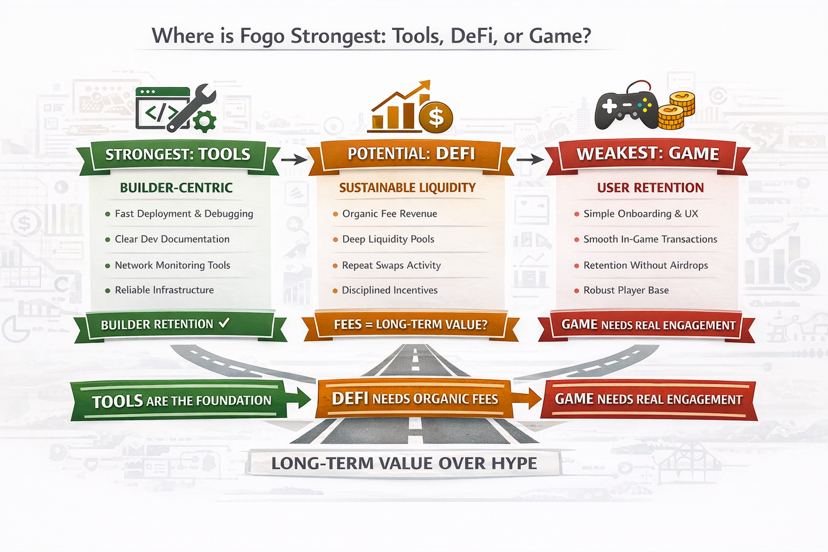 Here’s my blunt conclusion: the strongest segment right now is tools, the second pillar could become DeFi, and gaming isn’t a foundation yet. With Fogo, I don’t judge by how many projects slap their logos on a list. I judge by three very practical things: who is paying fees, what they are paying fees for, and whether they come back consistently. If you can answer those three questions, you’ll know which segment is truly strong, without needing any extra storytelling.