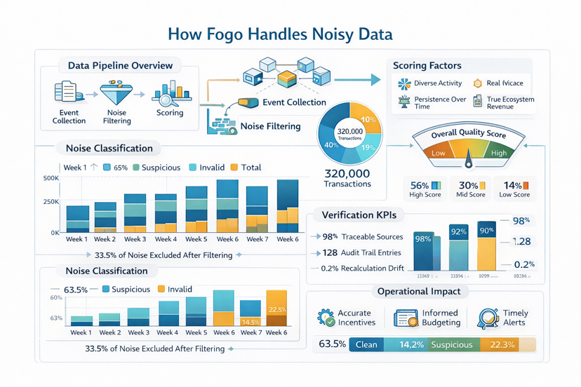 Compared with many projects I have seen, they tend to count everything equally and call that growth, which means whoever can pump the most gets rewarded the most. The approach I expect from Fogo is to treat growth as a signal that must pass validation. Raw data is only input material, while operational metrics should be a finished product that has been cleaned, quality scored, and can be re checked. It looks slower, but it is harder to manipulate.
