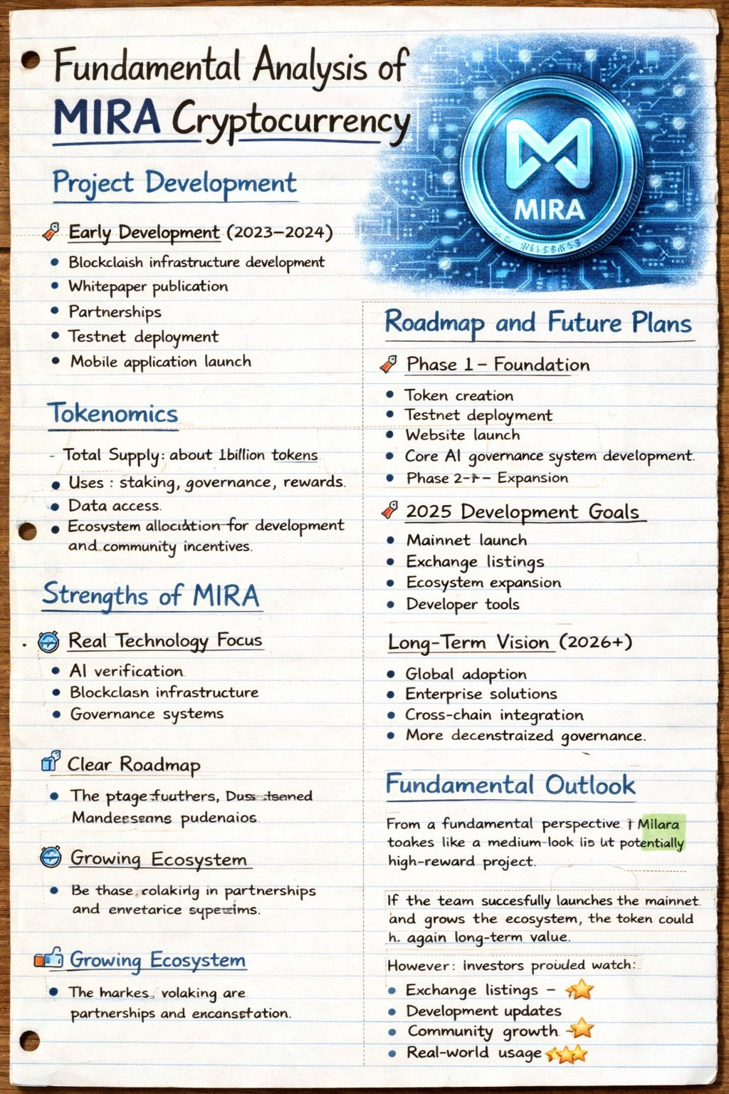 MIRA appears to be designed as a long-term ecosystem that integrates AI verification systems and decentralized governance. The project aims to solve trust and data authenticity problems by using blockchain-based verification combined with AI-driven validation tools.