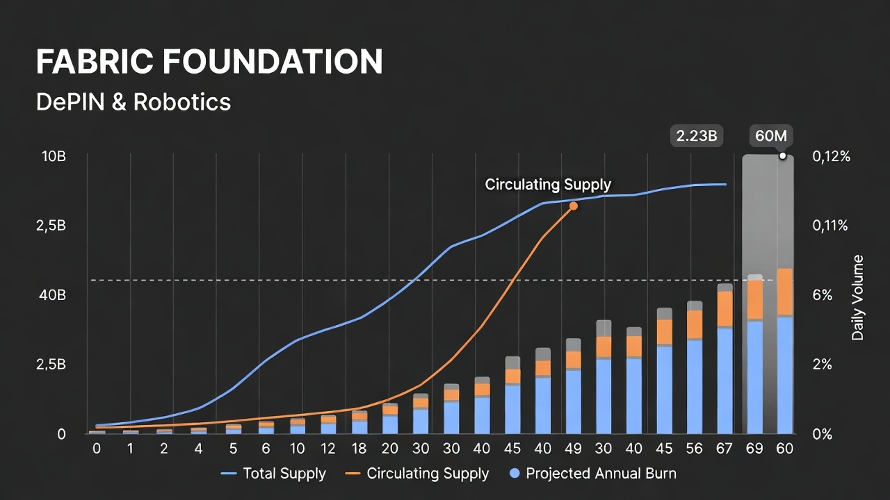 Utility spans fees, staking for genesis coordination, and bonds— all in ROBO. Burns from slashing add deflation: fraud penalties burn up to 50% post-bounty, while buybacks (phi=20% of revenue) reduce liquidity. Real data: Post-launch volume averaged $60 million daily, implying potential monthly revenue of $1-2 million if 10% fees apply (hypothetical based on similar DePIN).