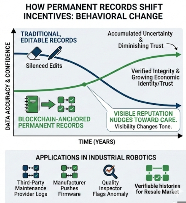 Industrial robots are becoming long-lived economic actors. Their past actions affect future trust, pricing, liability. If that past remains editable in ways that are invisible, markets will discount it. If it becomes harder to quietly rewrite, behavior adjusts.