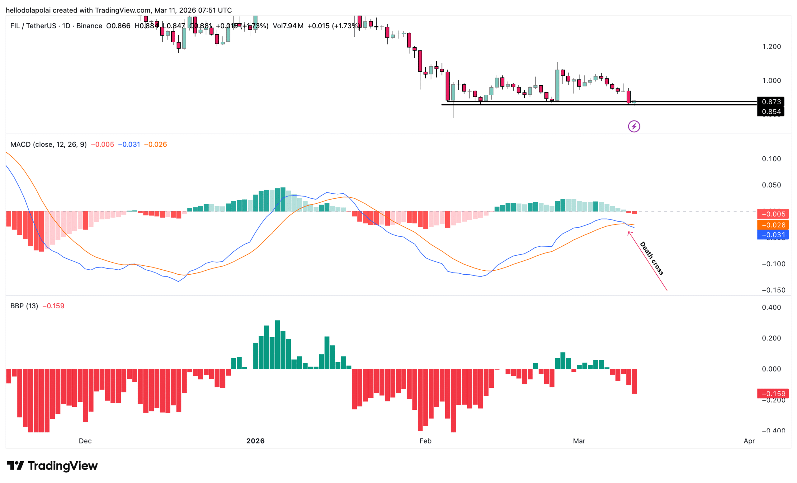 从技术图表来看,FIL目前依然疲软。截至发稿时,价格已跌破关键支撑位,而这个支撑位在2月份曾四次未能突破,可见它的重要性。