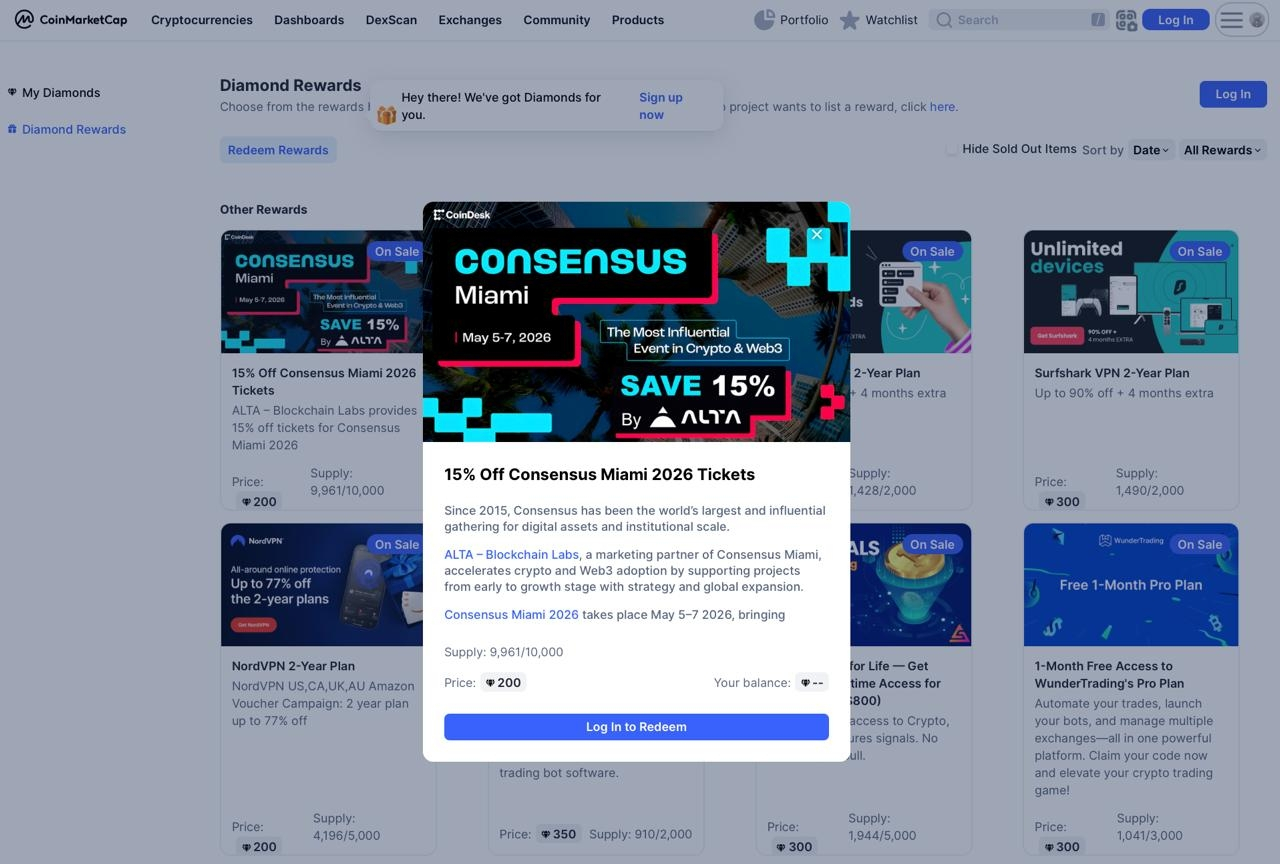 ALTA – Blockchain Labs has also launched a special CoinMarketCap Diamond Store campaign dedicated to Consensus Miami 2026. The Diamond Store is visited by over 29 million Diamond holders and 250,000 daily active users, allowing highly targeted crypto users to discover the event and access a special ticket discount from ALTA.