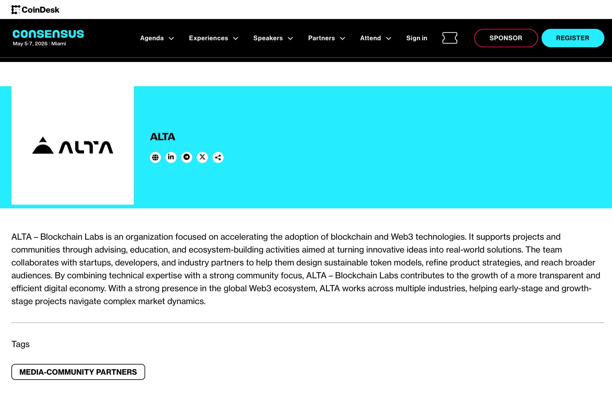@ALTA - Blockchain Labs , a global firm enabling crypto project success, has officially joined Consensus Miami 2026 by @CoinDesk as a Community & Marketing Partner, strengthening collaboration between leading Web3 innovators and one of the most influential events in the digital asset industry.